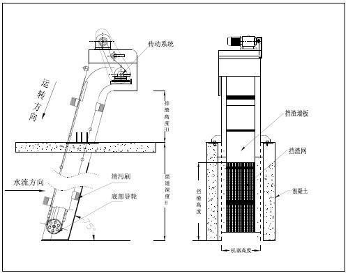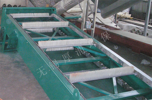 WBF轉(zhuǎn)刷網(wǎng)蓖式格柵除污機(jī)主要由驅(qū)動裝置、機(jī)架、主軸、柵網(wǎng)、托渣板、固定板刷、回轉(zhuǎn)刷及牽引鏈組成。在電機(jī)驅(qū)動下,通過減速機(jī)減速后,帶動鏈輪與鏈條運(yùn)動,固定在回轉(zhuǎn)鏈條上板刷沿柵網(wǎng)網(wǎng)面由下而上移動,清掃網(wǎng)面并帶走污物,污物運(yùn)送至頂部時(shí),大部分靠重力自行落至排渣都,少量附著在固定板刷上的污物被轉(zhuǎn)動的回轉(zhuǎn)刷清除掉,完成除污過程,液體則通過柵網(wǎng)的間隙流過,整個(gè)工作過程連續(xù)進(jìn)行。