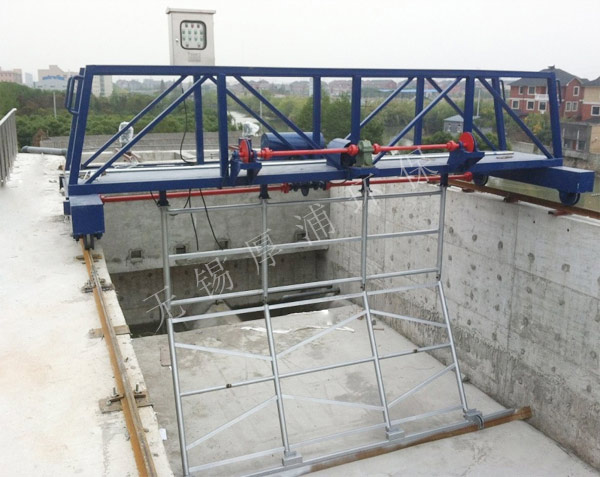 該設(shè)備由護(hù)欄、刮泥桁架、刮泥耙及導(dǎo)軌、刮泥橋、行走輪、軌道、提升機(jī)構(gòu)、驅(qū)動(dòng)機(jī)輪等組成。